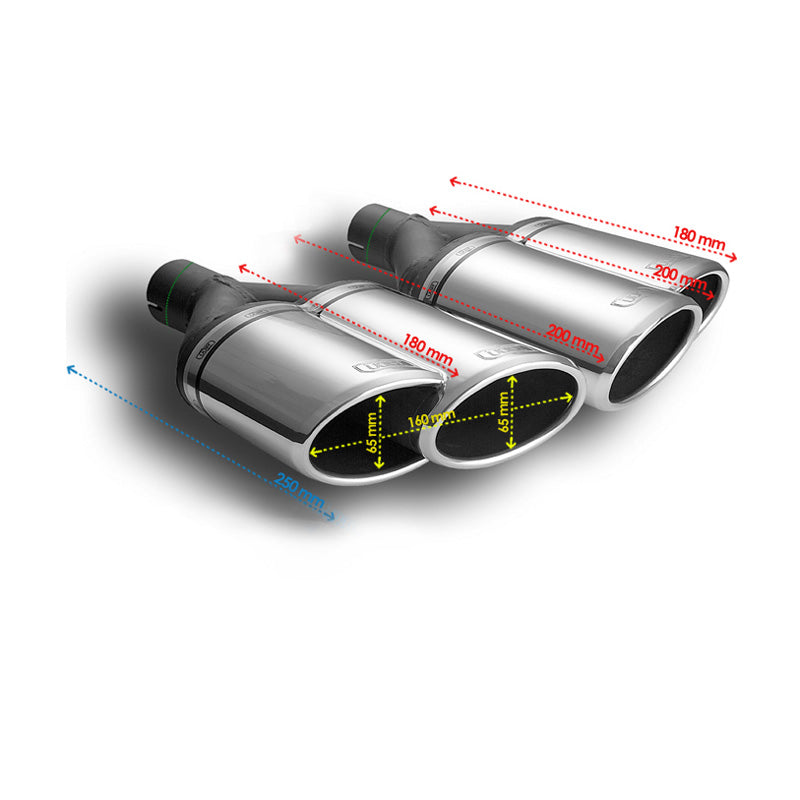Ulter Sport, Endrohr (Rechts) - Doppel Oval 160x65mm - Länge 200mm - Montage ->50mm - Edelstahl, Inox