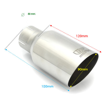 Ulter Sport, Endrohr - Rund Ø90mm Schräg - Länge 180mm - Montage ->50mm - Edelstahl, Inox