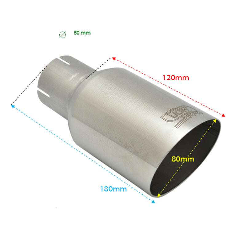 Ulter Sport, Endrohr - Rund Ø90mm Schräg - Länge 180mm - Montage ->50mm - Gebürstet Edelstahl, Inox