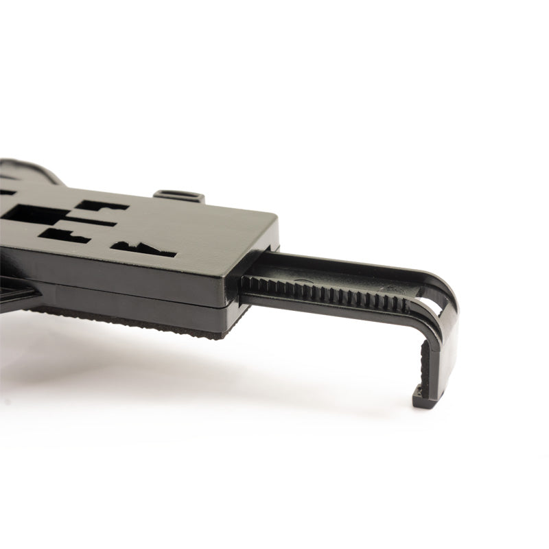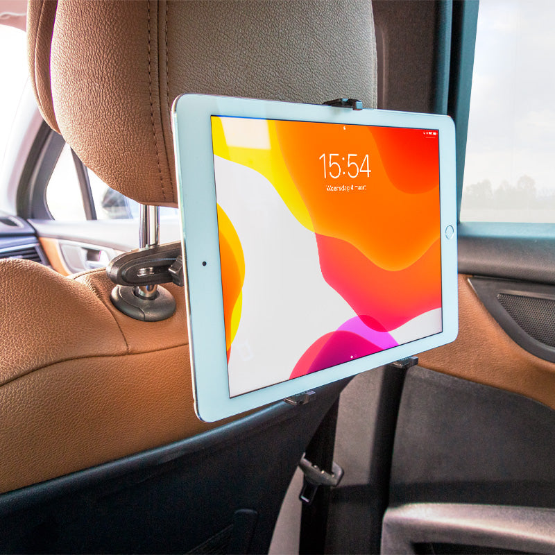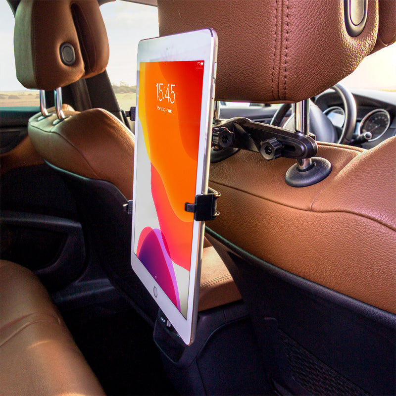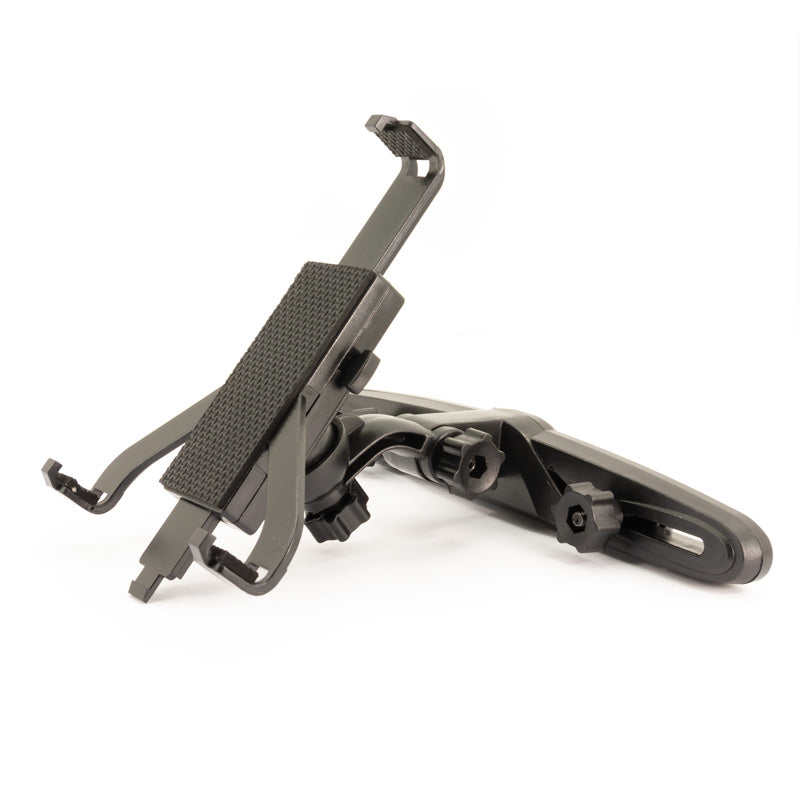 Die Klemm-/Spannmechanik mit Feststellschraube ermöglicht eine einfache Montage an den Kopfstützenstreben. Die übergreifenden Klemmbacken mit integrierter Moosgummiauflage garantieren einen sicheren Halt, eliminieren Vibrationsgeräusche und schützen das Tabletgehäuse. Zudem beeinträchtigen die individuell einstellbaren Klemmbacken nicht die Bedienungselemente Ihres Geräts.