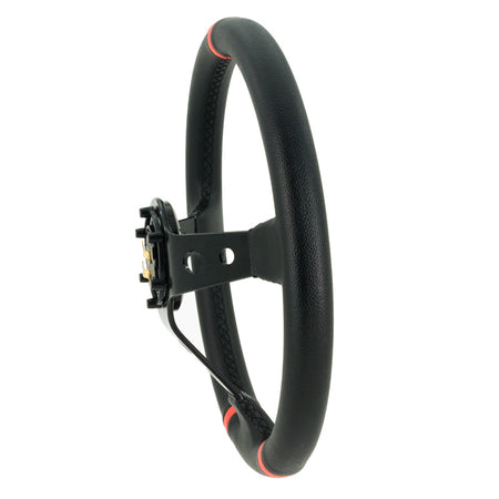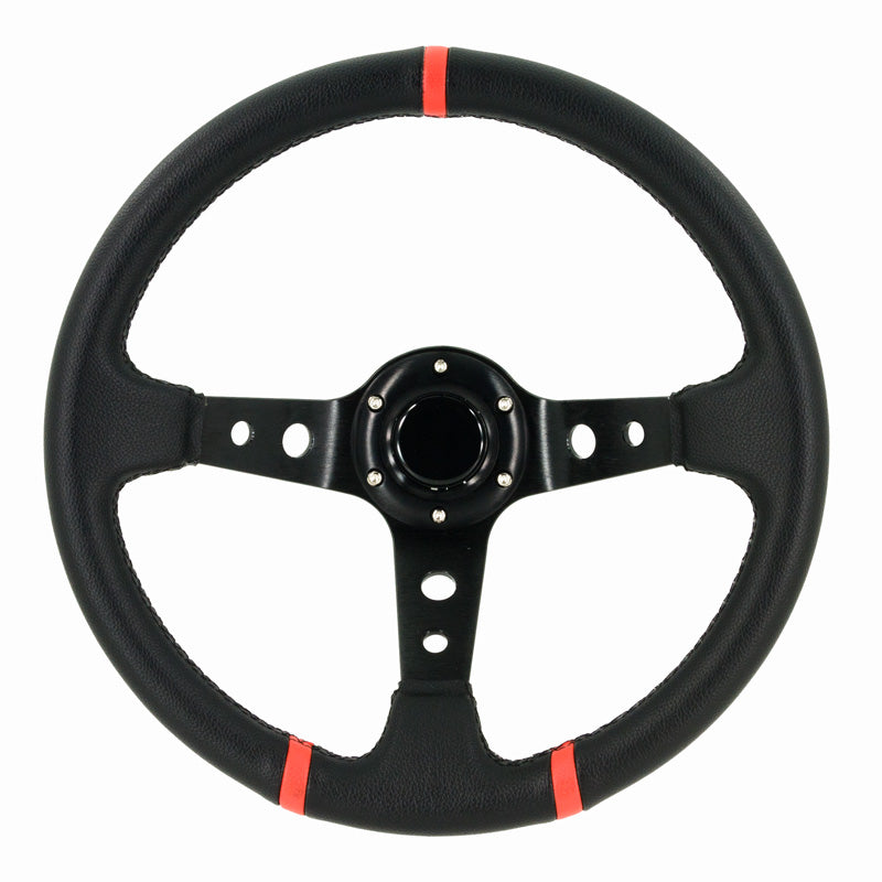 Das Universal Sportlenkrad 'Deep-Dish - Ø350mm - Schwarz PVC-Leder + Schwarze Speichen + Rote Streifen ist die perfekte Ergänzung für Ihr Fahrzeug. Dieses Lenkrad vereint Funktionalität und Stil und eignet sich ideal für den Einsatz im Autosport sowie für den täglichen Fahrspaß. Hergestellt aus hochwertigem schwarzem PVC-Leder, bietet es sowohl Komfort als auch eine ansprechende Optik.