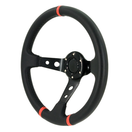 AutoStyle, Universal Sportlenkrad Deep-Dish - Ø350mm - Schwarz PVC-Leder + Schwarze Speichen + Rote Streifen, PU-Rim, Rot, Schwarz