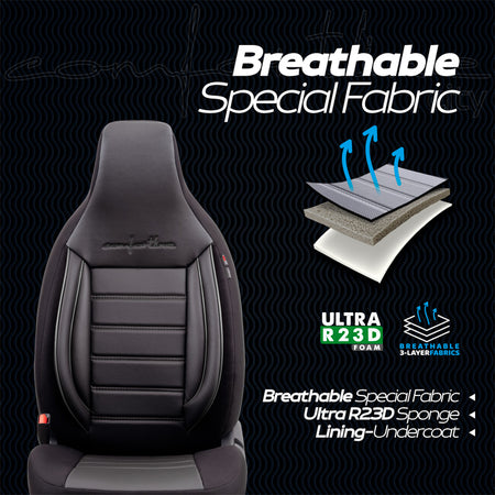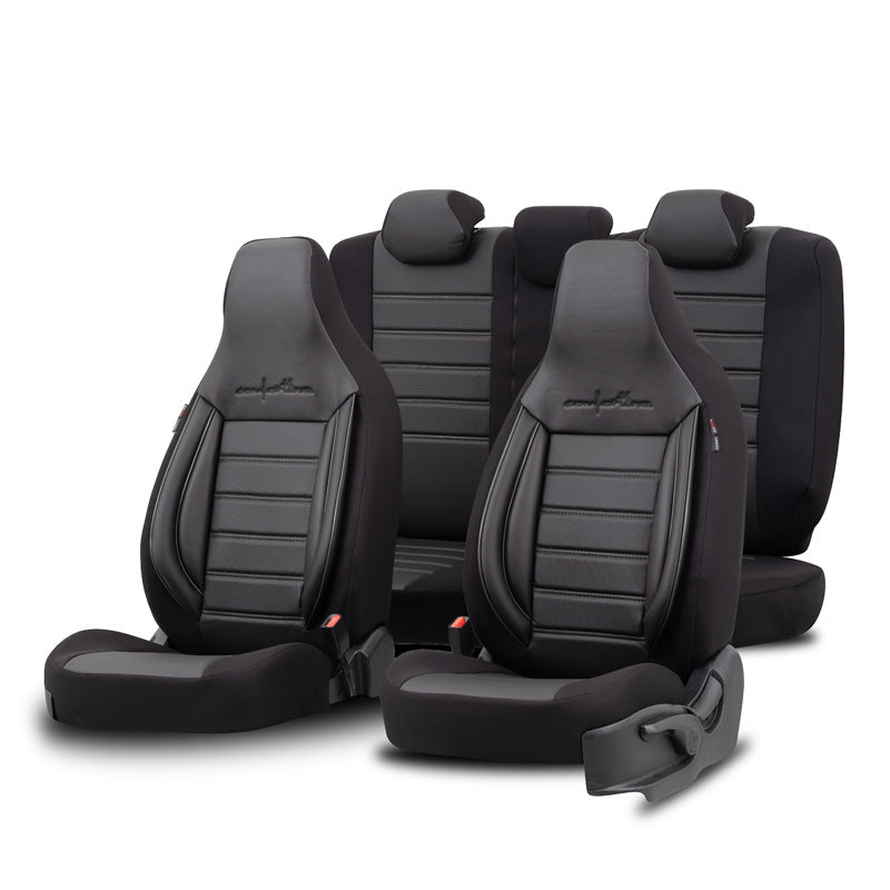 otoM, Universelle Leder/Stoff CityBug Sitzbezüge Comfortline Schwarz/Grau - 9-Teilig- - passend für Side-Airbags, Leder, Schaumgummi, Textil, Grau, Schwarz