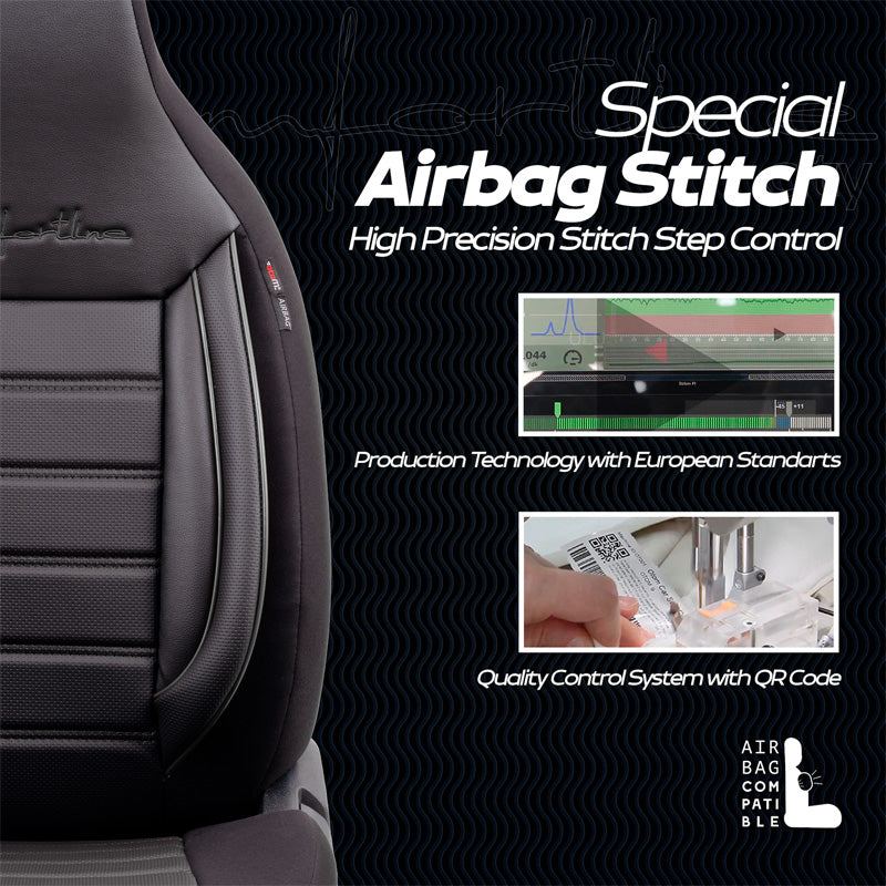 - Geeignet für Airbags: Airbag-Etiketten zeigen, dass die Sitzbezüge Airbag-Tests unterzogen wurden.