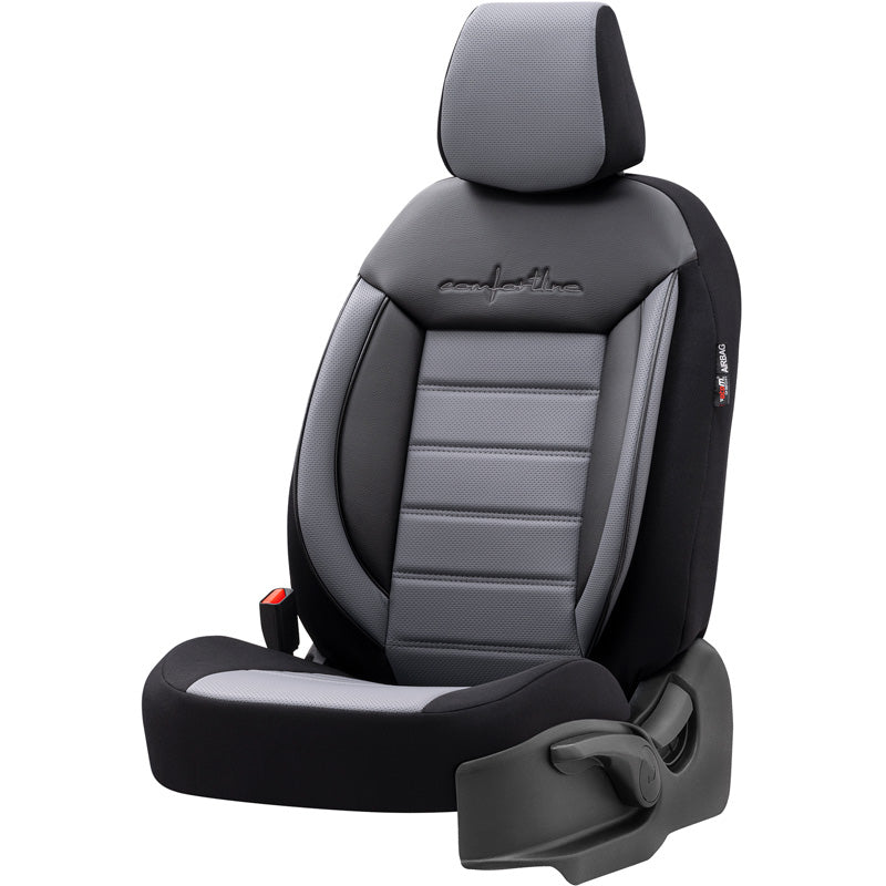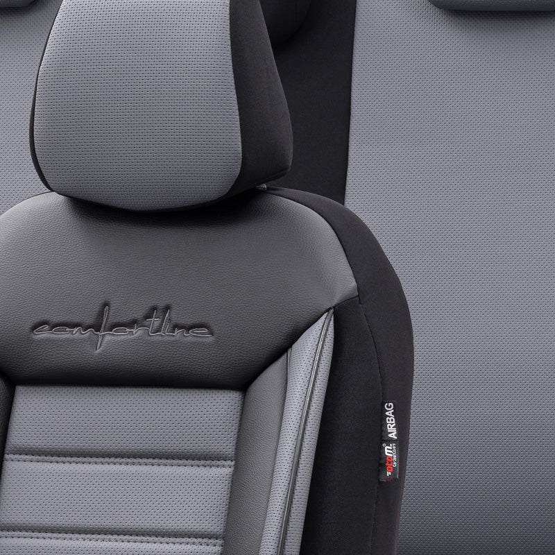 Die universellen Leder/Stoff Sitzbezüge 'Comfortline' in Schwarz/Grau bieten nicht nur einen stilvollen Look, sondern auch optimalen Schutz für Ihre Fahrzeugsitze. Diese 11-teilige Komplettlösung ist speziell für Fahrzeuge mit Side-Airbags konzipiert und sorgt für eine perfekte Passform.
