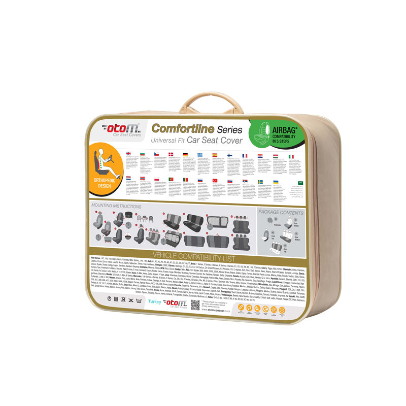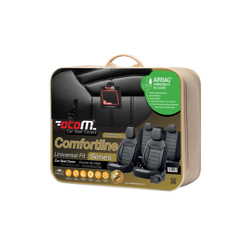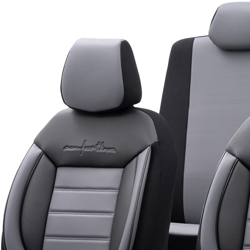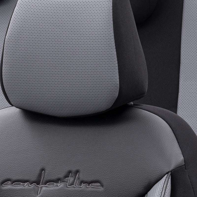 otoM, Universelle Leder/Stoff Sitzbezüge Comfortline Schwarz/Grau - 11-Teilig- - passend für Side-Airbags, Leder, Schaumgummi, Textil, Grau, Schwarz