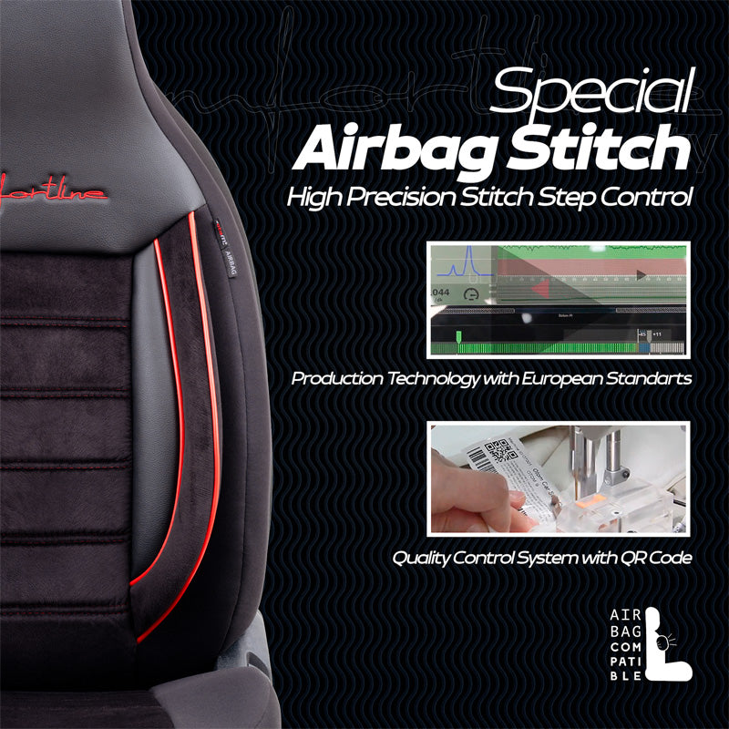 - Geeignet für Airbags: Airbag-Etiketten bestätigen die Sicherheit der Sitzbezüge.