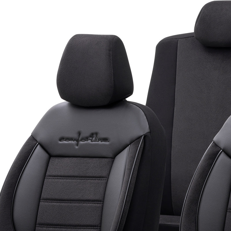 otoM, Universelle Samt/Stoff Sitzbezüge Comfortline Schwarz - 11-Teilig- - passend für Side-Airbags, Schaumgummi, Textil, Velours