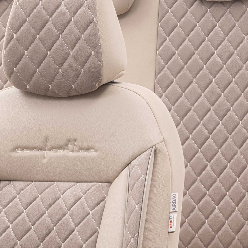 otoM, Universelle Samt/Stoff Sitzbezüge Comfortline VIP Crème- 11-Teilig- - passend für Side-Airbags, Schaumgummi, Textil, Velours, Creme