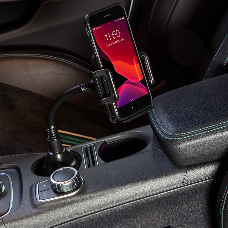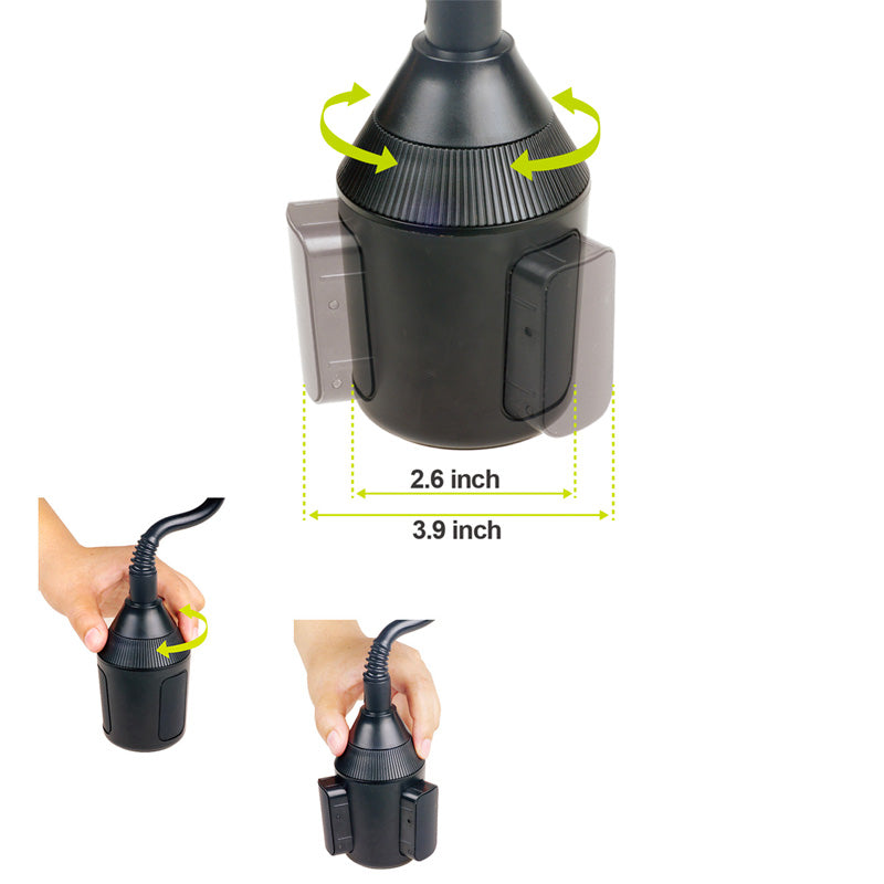 - Einfach zu montieren: Die Halterung lässt sich mühelos im Getränkehalter installieren und ist um 360° drehbar.