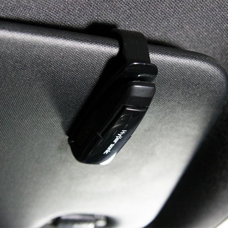 - Befestigung: Zur einfachen Anbringung an der Sonnenblende
