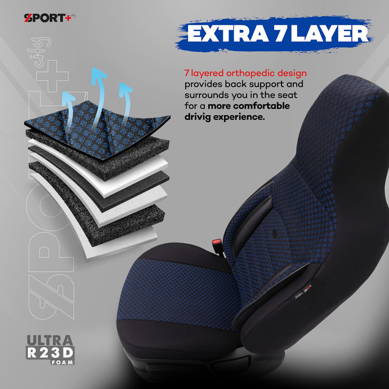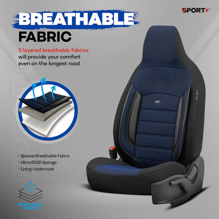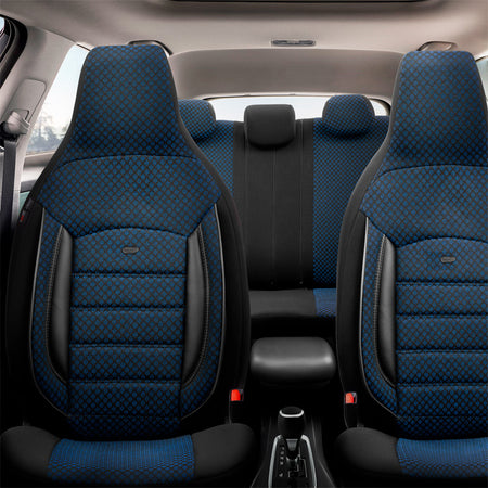 otoM, Universelle Stoff CityBug Sitzbezüge Sport Plus Schwarz/Blau - 9-Teilig- - passend für Side-Airbags, Schaumgummi, Textil, Blau, Schwarz