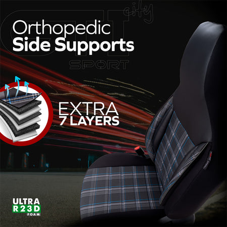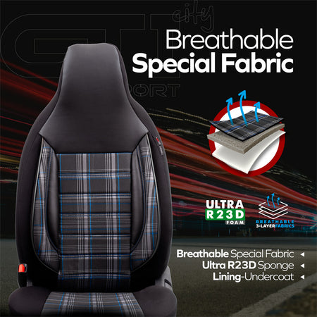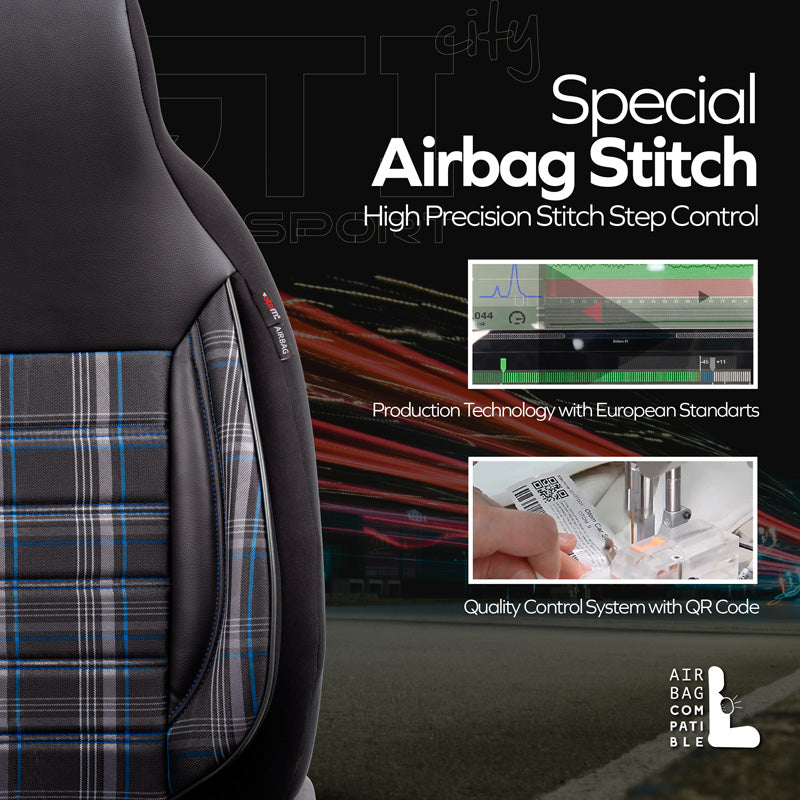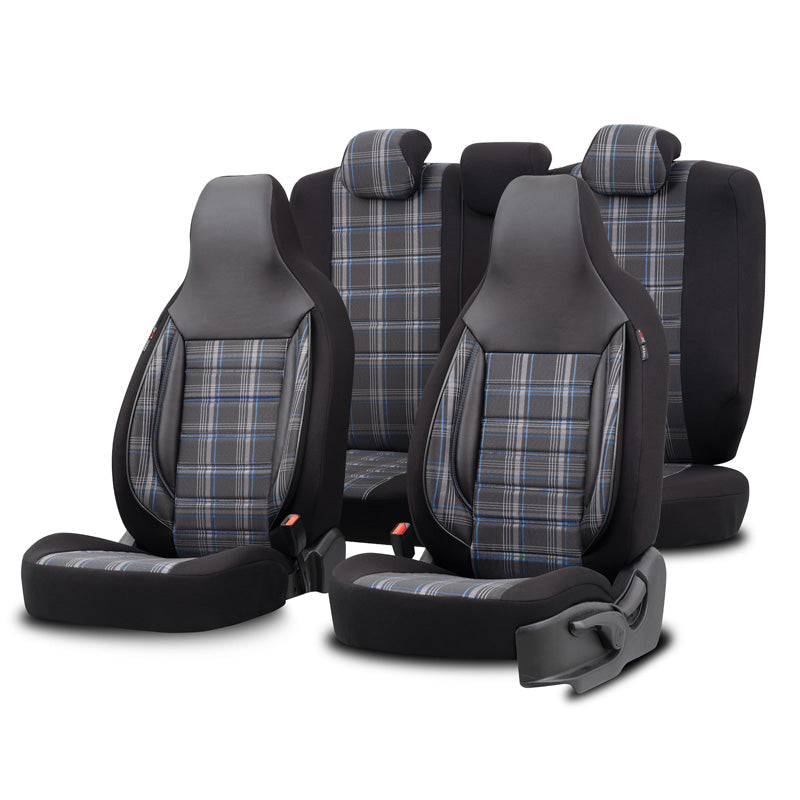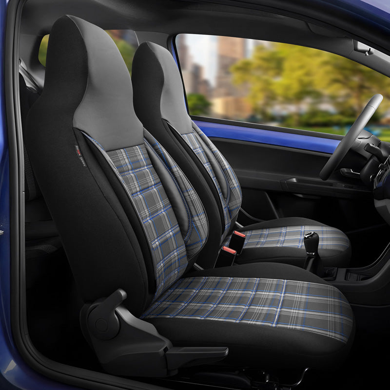 Die universellen Stoff-Sitzbezüge 'CityBug' in Schwarz/Grau/Blau bieten nicht nur einen modernen Look, sondern auch optimalen Schutz für Ihre Autositze. Mit einem hochwertigen Komplettsatz, der speziell für Fahrzeuge mit Seitenairbags entwickelt wurde, sind diese Bezüge die ideale Lösung für alle, die Wert auf Qualität und Funktionalität legen.