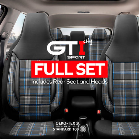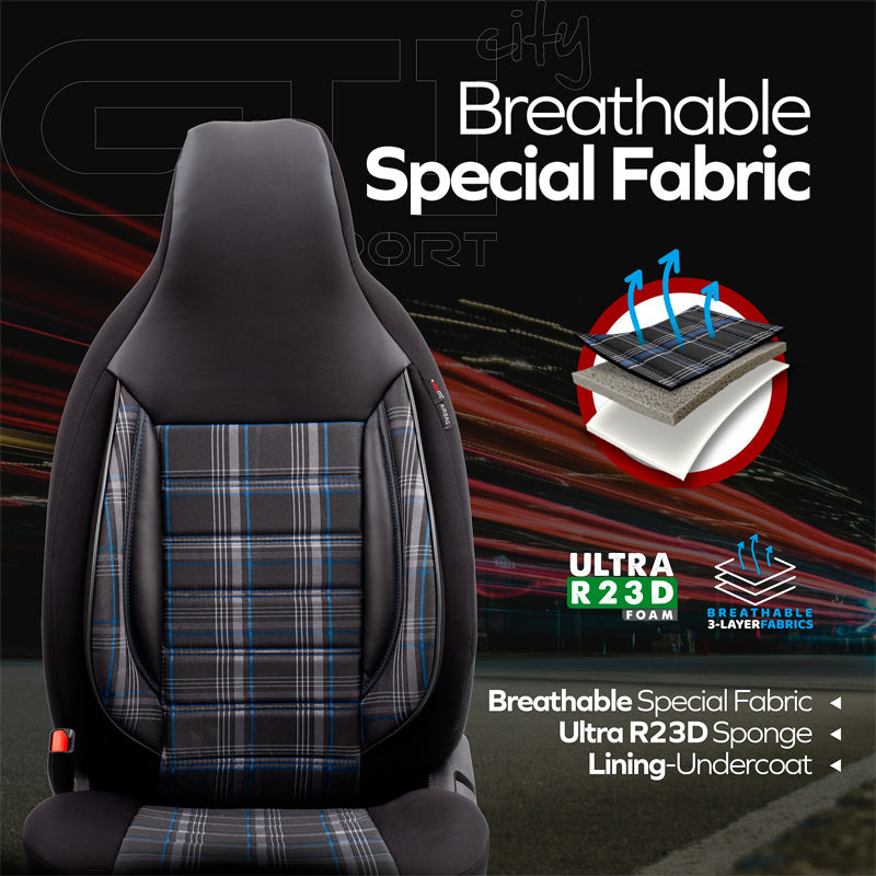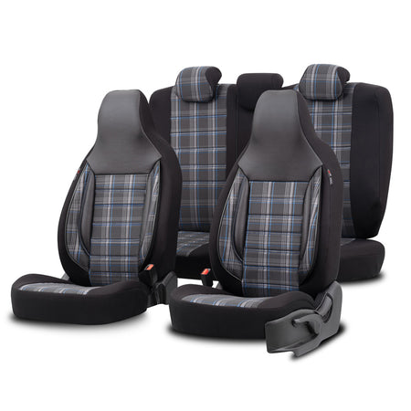 otoM, Universelle Stoff CityBug Sitzbezüge Sports Schwarz/Grau/Blau - 9-Teilig- - passend für Side-Airbags, Schaumgummi, Textil, Blau, Grau, Schwarz
