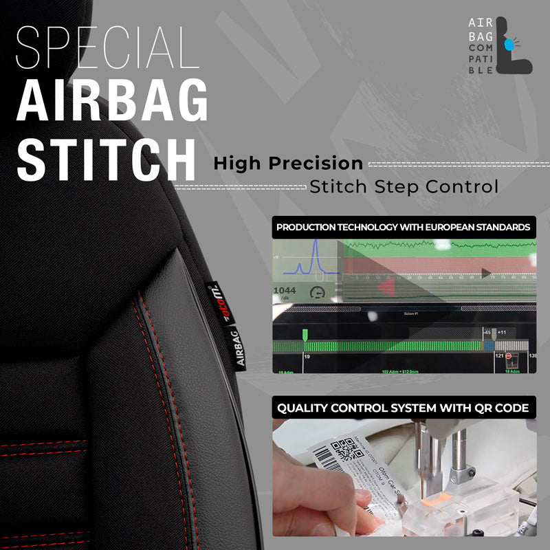 - Geeignet für Airbags: Airbag-Etiketten bestätigen die Sicherheit der Sitzbezüge.