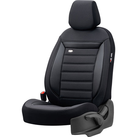 Die universellen Stoff Sitzbezüge 'Prestige' in Schwarz/Anthrazit bieten nicht nur einen eleganten Look, sondern auch optimalen Schutz für Ihre Fahrzeugsitze. Diese hochwertigen Bezüge sind speziell für Fahrzeuge mit Side-Airbags entwickelt und garantieren eine perfekte Passform.