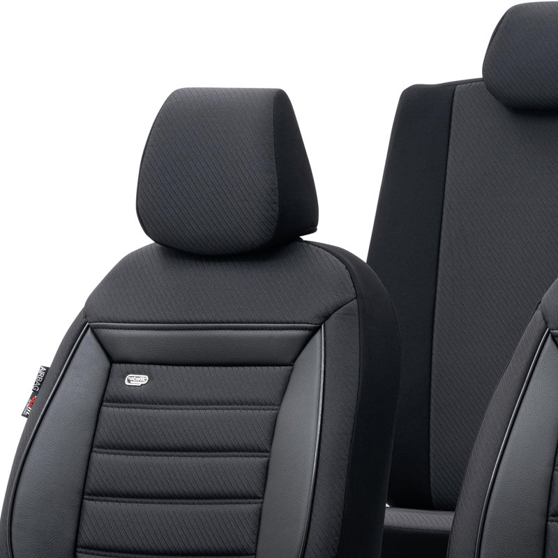 otoM, Universelle Stoff Sitzbezüge Prestige Schwarz/Anthrazit - 11-Teilig- - passend für Side-Airbags, Schaumgummi, Textil, Grau, Schwarz