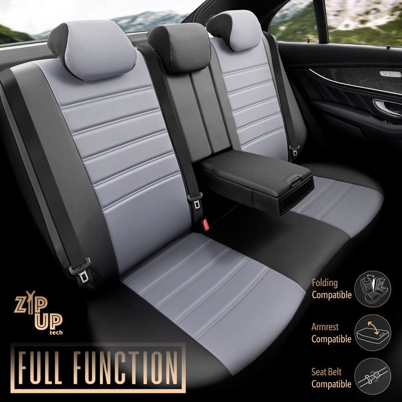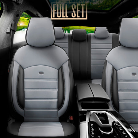 Die Universellen Voll-Leder Sitzbezüge 'Inspire' in Schwarz/Grau bieten nicht nur einen eleganten Stil, sondern auch optimalen Schutz für Ihre Autositze. Diese hochwertigen Bezüge sind speziell für Fahrzeuge mit Side-Airbags konzipiert und kombinieren Komfort mit Funktionalität.
