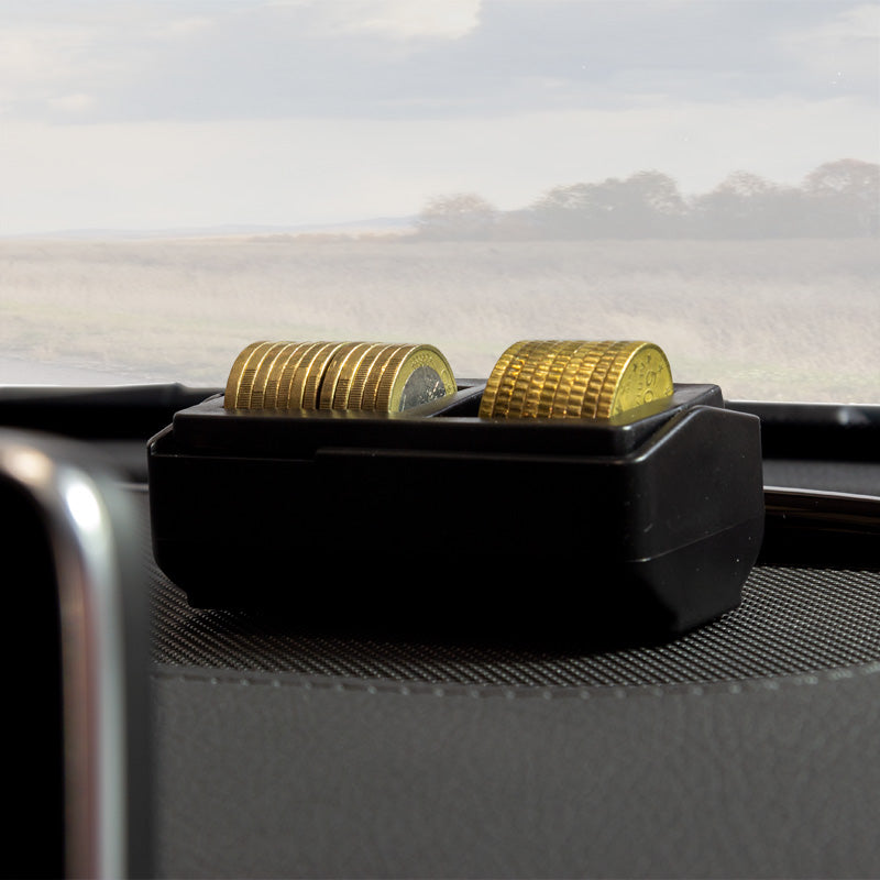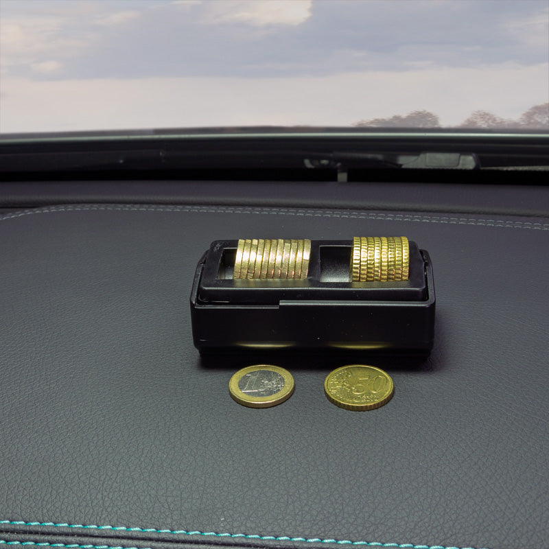 Der universelle kompakte Münzhalter ist die ideale Lösung für die sichere Aufbewahrung Ihrer losen Münzen. Mit seinen kompakten Abmessungen passt er perfekt in jede Tasche und ist somit der ideale Begleiter für den Parkscheinautomaten oder den Einkaufswagen.