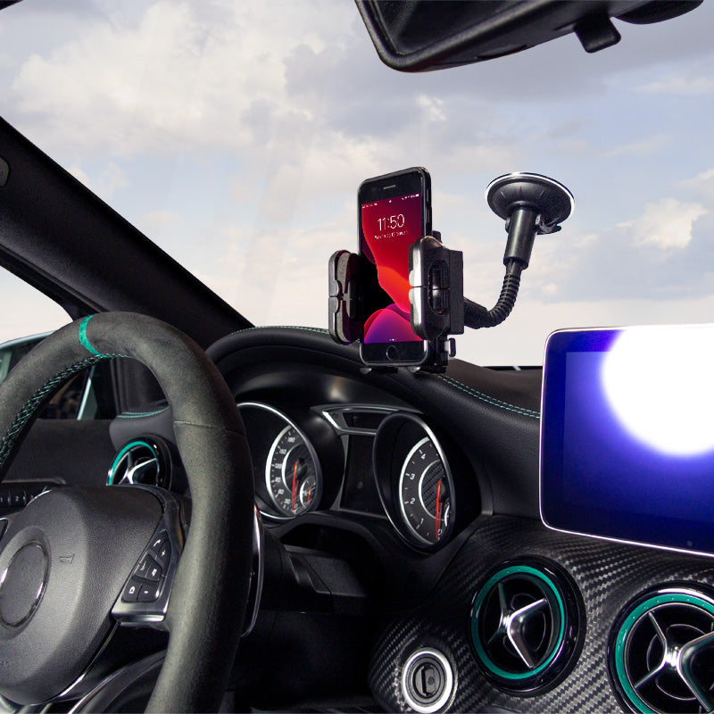 Die universelle Smartphone- und Navigationshalterung ist die ideale Lösung für sicheres Fahren und eine einfache Navigation. Mit ihrem flexiblen Schwanenhals und dem starken Saugnapf bietet sie eine stabile und anpassbare Halterung für Ihr Gerät.