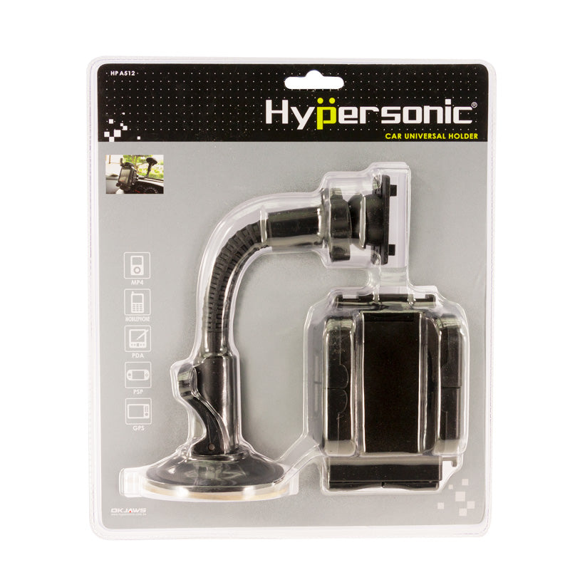 Hypersonic, Universeller Smartphone/Navigationshalterung mit Saugnapf/Schwanenhals 40-120mm, Kunststoff, Schwarz
