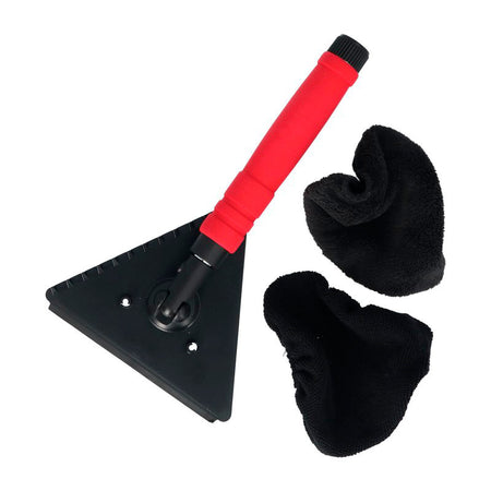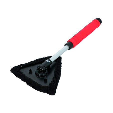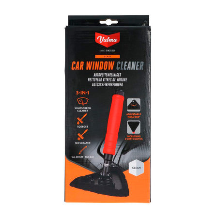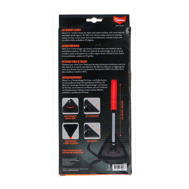Valma multifunctional 3 in 1 car window cleaner for cleaning car windows, both inside and outside. With the 3 in 1 car window cleaner and soft microfibre cloth, you quickly clean the inside of the car window without streaks. The 360° rotating flexible head with triangular blade also allows easy access to the corners of the car window. The microfibre cloth has high absorption capacity and is therefore also ideal for removing condensation or for use as a window squeegee. Without the microfibre cloth, the windshield cleaner can be used as an ice scraper to make windows ice-free. The handle with comfortable soft foam has a telescopic handle and is extendable from 30 to about 48cm. The Valma windscreen cleaner comes with 2 extra soft microfibre cloths. The microfibre cloths can be machine washed at 40 degrees.