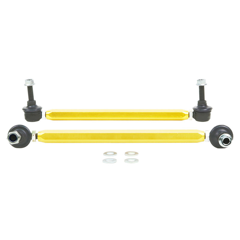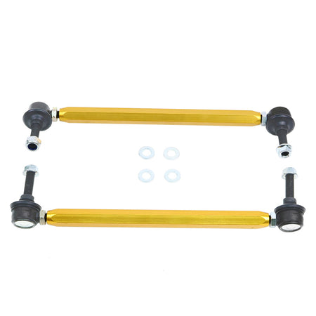 Die Whiteline Stabilisator-/Kupplungsstange ist die ideale Lösung für Autofahrer, die Wert auf verbesserte Handhabung und Fahrstabilität legen. Oft wird die Effektivität von Stabilisatoren durch abgenutzte oder unzureichende Halterungen, Verbindungsstangen und seitliche Stopper beeinträchtigt. Mit den verstellbaren Stabilisator-Verbindungsstangen von Whiteline erhalten Sie hochwertige, leichte Komponenten, die eine optimale Anpassung ermöglichen und den Stabilisator ohne Vorbelastung installieren.