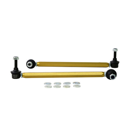 Die Whiteline Stabilisator/Kupplungsstange wurde entwickelt, um die Leistung Ihres Fahrzeugs zu verbessern und ein besseres Handling zu gewährleisten. Oftmals wird die Effektivität von Stabilisatoren durch verschlissene oder unzureichende Halterungen und Verbindungen beeinträchtigt. Mit den verstellbaren Stabilisatorverbindungen von Whiteline erhalten Sie hochwertige, leichte Komponenten, die eine optimale Anpassung ermöglichen und die Voreinstellung des Stabilisators bei der Installation eliminieren. Dies sorgt für maximalen Grip und ein verbessertes Fahrverhalten.