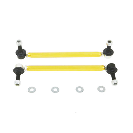 Wussten Sie, dass die Effektivität von Stabilisatoren durch abgenutzte oder unzureichende Halterungen, Verbindungsstücke und seitliche Stopper beeinträchtigt werden kann? Die verstellbaren Stabilisatorlinks von Whiteline sind so konzipiert, dass sie diesen Herausforderungen gewachsen sind. Sie bieten hochwertige, leichte Komponenten und eine einstellbare Funktion, die eine optimale Leistung des Stabilisators gewährleistet.